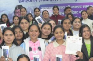 मुख्यमंत्री धामी और मंत्री रेखा आर्या ने मेधावी बालिकाओ को वितरित किये स्मार्टफोन, कहा हमारी बेटियां हैं हमारे अभिमान