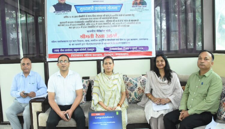 देहरादून: कोरोनाकाल में कोरोना महामारी समेत अन्य बीमारियों से माता-पिता व संरक्षक खो चुके बच्चों की देखभाल एवं पुनर्वास के लिए सरकार गंभीरता से जुटी है। इस कड़ी में महिला सशक्तीकरण एवं बाल विकास मंत्री रेखा आर्या ने गुरुवार को यमुना कॉलोनी स्थित कैम्प कार्यालय में मुख्यमंत्री वात्सल्य योजना के 5747 लाभार्थियों को उनके बैंक खातों में मार्च 2024 से जून 2024 तक (चार माह) की 6 करोड़ 95 लाख 73 हजार रुपये की सहायता राशि का डिजिटल माध्यम से हस्तांतरण किया। इस योजना में बच्चों को 21 वर्ष की आयु तक तीन हजार रुपये प्रतिमाह सहायता देने का प्रविधान किया गया है।