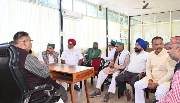 कृषि मंत्री गणेश जोशी से कैंप कार्यालय में अपनी विभिन्न समस्याओं के संबंध में भेंट करते किसान संगठन प्रतिनिधि।