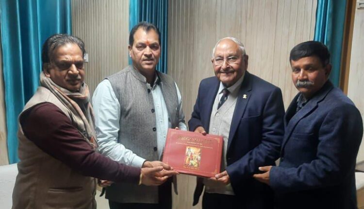 कैबिनेट मंत्री डा. प्रेमचंद अग्रवाल से अंग्रेजी साहित्यकार केजी बहल ने श्रीमद् भागवत की अंग्रेजी अनुवाद की पुस्तक भेंट की।