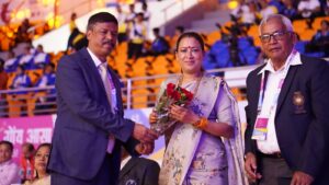 मुझे पूर्ण विश्वास है कि अगले वर्ष देवभूमि में 38वें राष्ट्रीय खेलों का आयोजन किया जाना है जिसके लिए हमारा प्रदेश पूरी तरह से तैयार है और हमारी सरकार राज्य में खेलों में स्वस्थ प्रतिस्पर्धा बढ़ाने,जनमानस का खेलों के प्रति रुझान बढ़ाने,खिलाड़ियों की प्रतिभागिता में वृद्धि करने के लिए सदैव प्रतिबद्ध है। साथ ही कहा कि गोवा में जारी राष्ट्रीय खेलों में हमारे प्रदेश के खिलाड़ियों ने उत्कृष्ट प्रदर्शन किया है जो कि हमारे लिए गर्व की बात है। कहा कि आज मैं बॉक्सिंग और हैंडबॉल प्रतियोगिता में सम्मलित हुई वहीं