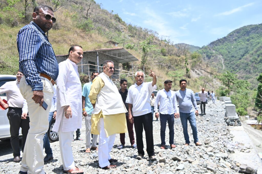 ग्राम्य विकास मंत्री गणेश जोशी ने पीएमजीएसवाई से निर्मित होने वाली पुरुकुल-किमाड़ी मोटर मार्ग का निरीक्षण किया