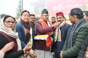 रुद्रपुर, 26 जनवरी। सुबे के कृषि एवं जनपद ऊधम सिंह नगर के प्रभारी मंत्री गणेश जोशी ने आज गणतंत्र दिवस के अवसर पर रुद्रपुर स्थित भाजपा के जिला कार्यालय में ध्वजारोहण किया। इस अवसर पर मिठाई खिलाकर एक दूसरे गणतंत्र दिवस की बधाई दी गई।