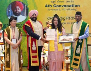 राज्यपाल ने अपने संबोधन में छात्रों को बधाई और शुभकामनाएं देते हुए कहा कि आप अमृतकाल के बेहद महत्वपूर्ण समय में उत्तीर्ण हुए हैं जिससे आप सभी की जिम्मेदारी और अधिक बढ़ जाती है। उन्होंने कहा कि विश्वविद्यालय के ऐम्बेस्डर के रूप में आप सभी देश और प्रदेश के विकास में अपना महत्वपूर्ण योगदान दें।