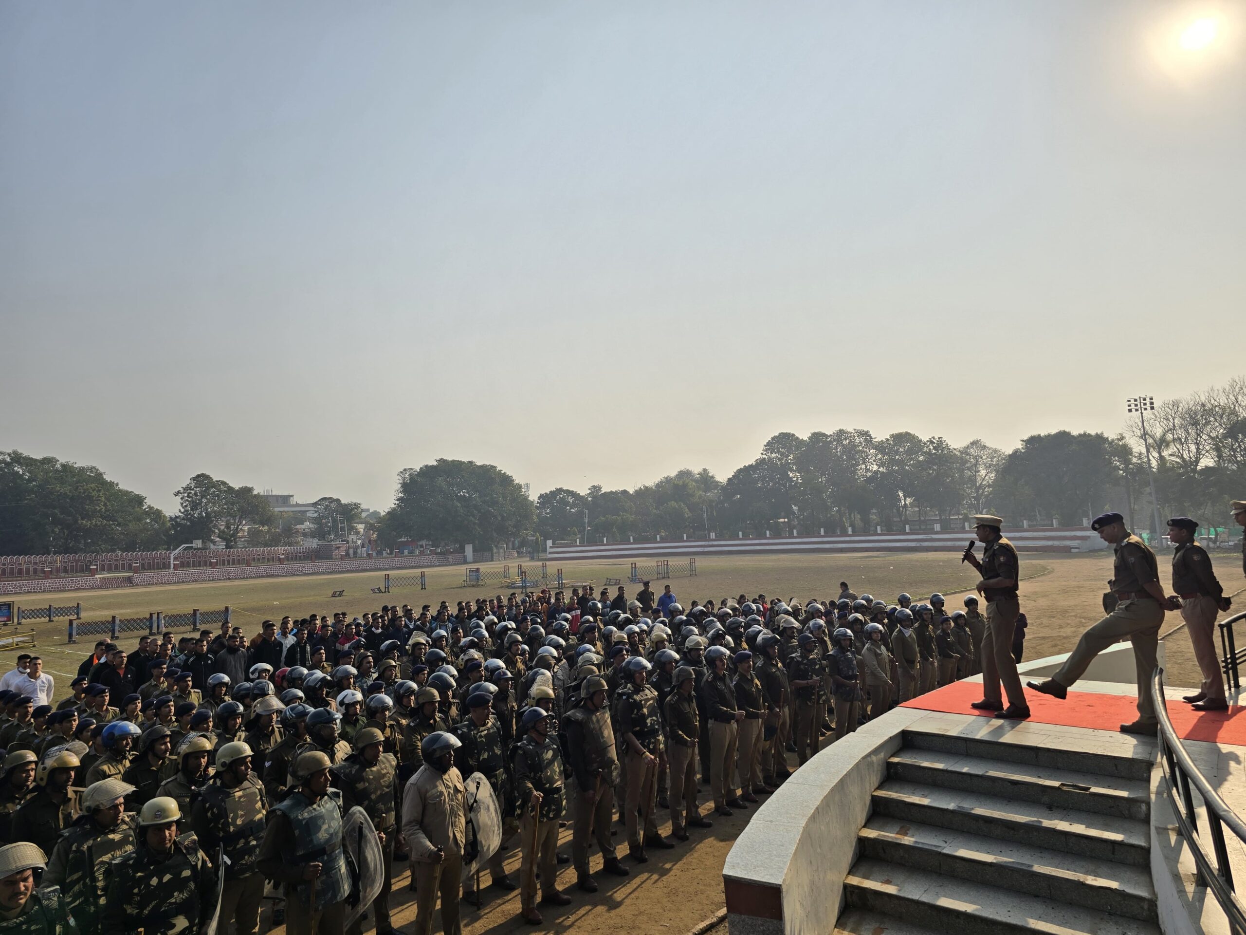 ड्रिल के दौरान फायर ब्रिगेड/घुड़सवार पुलिस/अश्रु गैस टीम/लाठी पार्टी/फायरिंग पार्टी ने किया अभ्यास