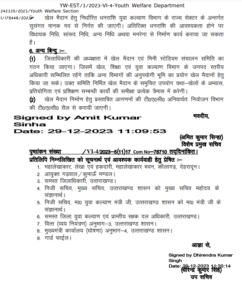 कहा कि खेल मैदान में दौड़, लम्बीकूद एवं ऊंचीकूद, थ्रो पर आधारित खेल, खो-खो, कबड्डी, वालीबाल, फुटबाल, बास्केटबाल, पुशअप, चिनअप, ताईक्वांडो, बाक्सिंग आदि सुविधाएँ उपलब्ध कराई जायगी। युवाओं के विभिन्न खेलों में प्रशिक्षण के लिए 01 खेल प्रशिक्षक खेल विभाग द्वारा निर्धारित मानदेय के आधार पर तैनात किया जाएगा जिसका मानदेय का भुगतान युवा कल्याण विभाग की जिला योजना से किया जाएगा और तैनात अंशकालिक प्रशिक्षक को एक से अधिक खेल मैदानों में प्रशिक्षण का दायित्व दिया जा सकता है।