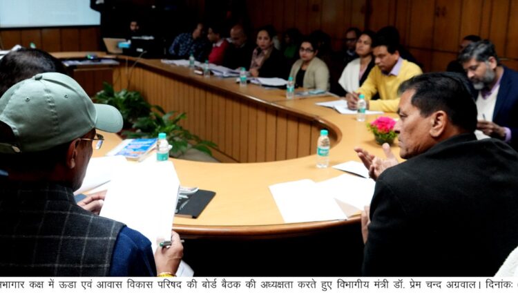 प्रदेश के शहरी विकास मंत्री डॉ. प्रेम चन्द अग्रवाल ने अधिकारियों के साथ विधानसभा स्थित सभागार कक्ष में ऊडा और आवास विकास परिषद की बोर्ड बैठक की अध्यक्षता की।