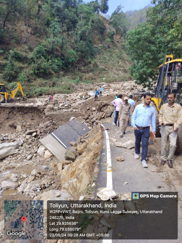 यहां पर सड़क पूर्ण रूप से क्षतिग्रस्त थी। टीम द्वारा ग्राम में क्षति का जायजा लिया गया।