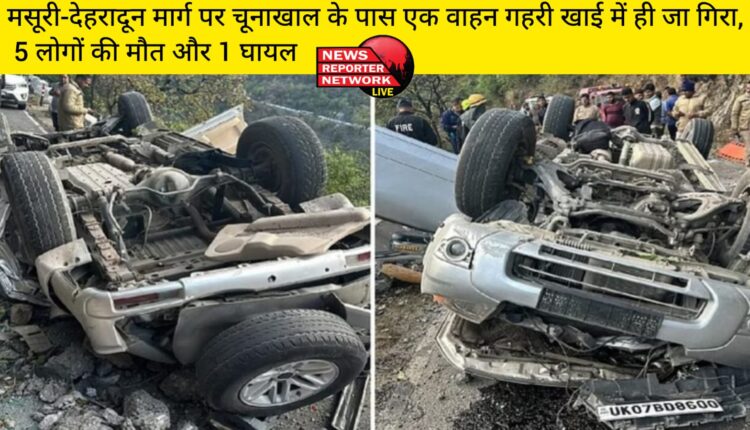 मसूरी-देहरादून मार्ग पर चूनाखाल के पास एक वाहन गहरी खाई में ही जा गिरा, 5 लोगों की मौत और 1 घायल