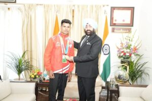 राज्यपाल लेफ्टिनेंट जनरल गुरमीत सिंह (से नि) से आज राजभवन में युवा एथलीट अंकित कुमार ने भेंट की।