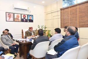 देहरादून। सुबे के कृषि मंत्री गणेश जोशी ने बुधवार को कैंप कार्यालय में कृषि एवं उद्यान विभाग की बैठक की। समीक्षा बैठक के दौरान विभागीय मंत्री गणेश जोशी ने पिछली बैठक में दिए गए दिशा निर्देशों और केंद्र पोषित एवं राज्य पोषित योजनाओं की प्रगति की विस्तार से जानकारी ली और आवश्यक दिशा निर्देश दिए।