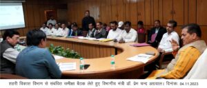 शहरी विकास मंत्री डॉ. प्रेम चन्द अग्रवाल ने विधानसभा स्थित सभागार कक्ष में नगर निकाय के अधिकारियों के साथ बैठक कर राज्य में चल रही केंद्र पोषित योजना, 15वें वित्त तथा पांचवें राज्य वित्त योजनाओं की समीक्षा की।