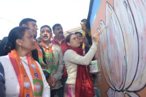 सूबे की मंत्री रेखा आर्य ने भारतीय जनता पार्टी के दीवार लेखन अभियान में किया प्रतिभाग