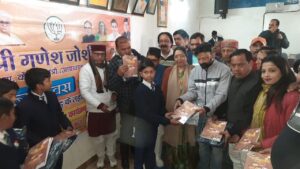 भारतीय जनता पार्टी के पदाधिकारियों और कार्यकर्ताओं के द्वारा सूबे के कैबिनेट मंत्री गणेश जोशी के जन्मदिवस (31 जनवरी) को सेवा सप्ताह के रूप में मनाया जा रहा है। सेवा सप्ताह के दूसरे दिन में राजकीय इंटर कॉलेज डोभालवाला में 400 से अधिक बच्चों को पंजाब नेशनल बैंक के सीएसआर मद से ट्रैकसूट वितरित किए गए। पार्टी पदाधिकारियों ने बताया कि मंत्री जोशी के जन्मदिवस के प्रथम दिवस पर प्रधानमंत्री नरेन्द्र मोदी के आव्हान पर देश में स्वच्छता कार्यक्रम की अलख जन-जन तक पहुंचाने के लिए इस कार्यक्रम से सेवा सप्ताह को प्रारम्भ किया गया। यह ऐसा पहली बार नहीं है कि उनके जन्मदिवस पर सेवा कार्य किये जा रहे हो बल्कि ऐसा पिछले लम्बे समय से होता आ रहा है कि मंत्री जोशी के जन्मदिवस पर कार्यकर्ताओं द्वारा गरीब और असहाय व्यक्तियों के बीच जाकर अलग-अलग माध्यमों से सेवार्थ के कार्य किये जाते हैं।