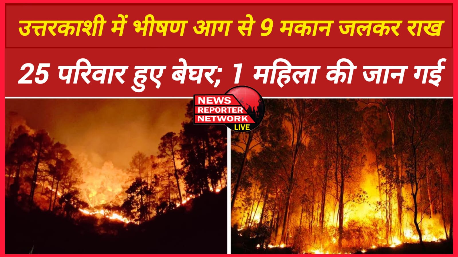 उत्तरकाशी में भीषण आग से 9 मकान जलकर राख, 25 परिवार हुए बेघर; 1 महिला की जान गई