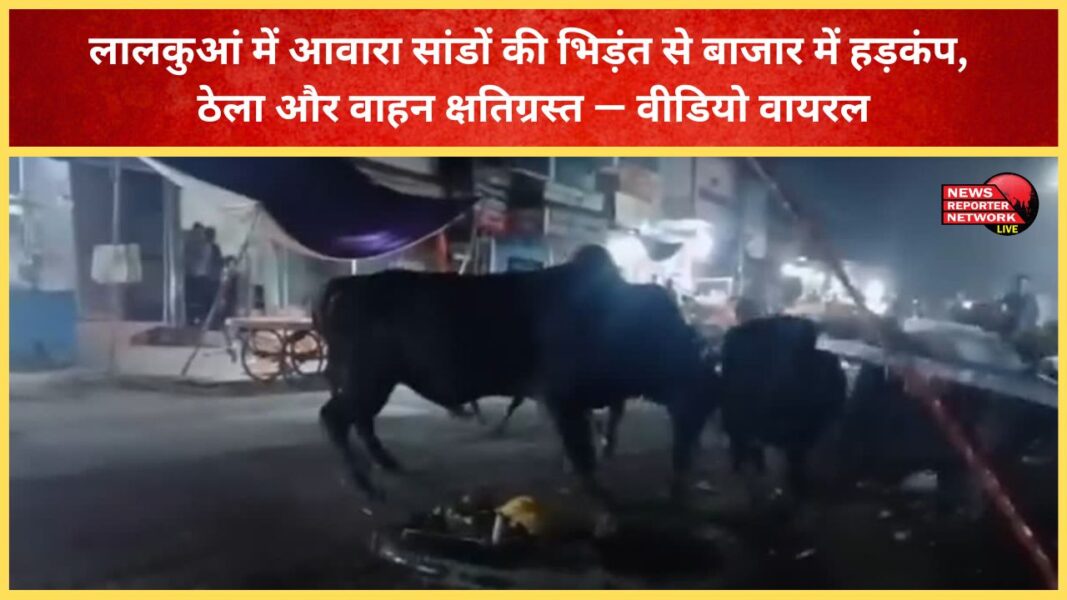लालकुआं में आवारा सांडों की भिड़ंत से बाजार में हड़कंप, ठेला और वाहन क्षतिग्रस्त — वीडियो वायरल