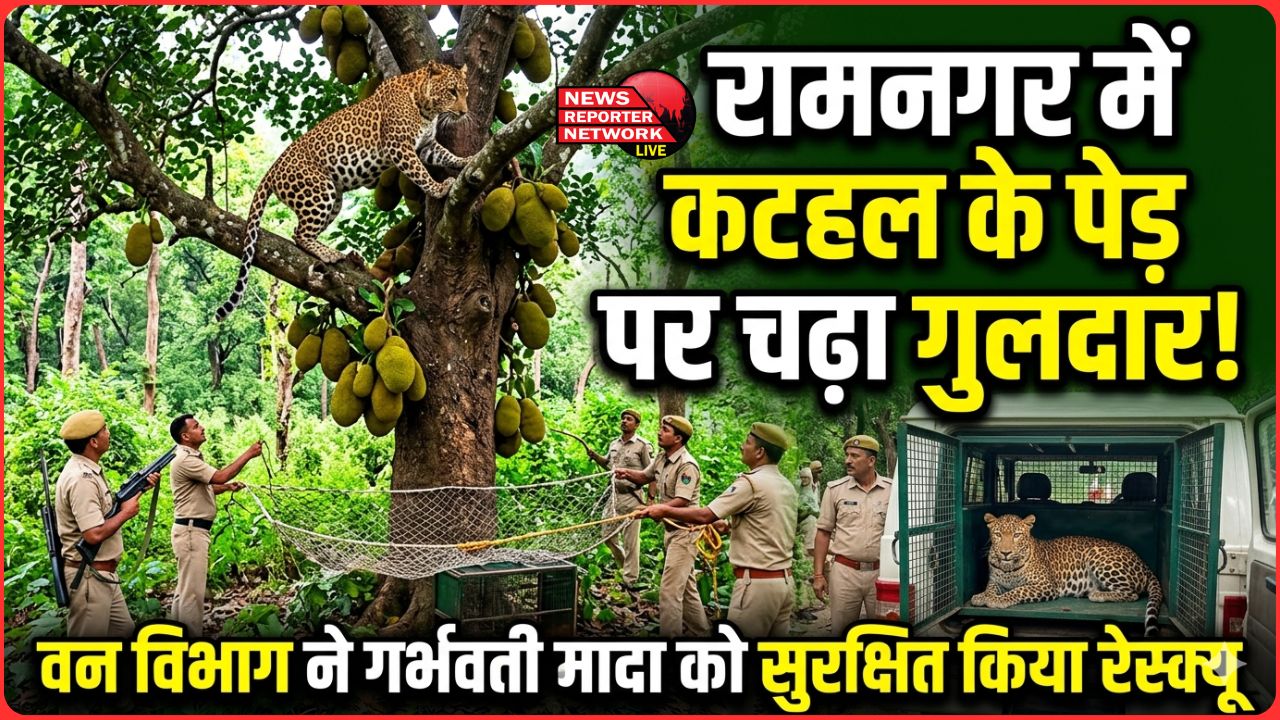 रामनगर में कटहल के पेड़ पर चढ़ा गुलदार, वन विभाग ने गर्भवती मादा को सुरक्षित किया रेस्क्यू