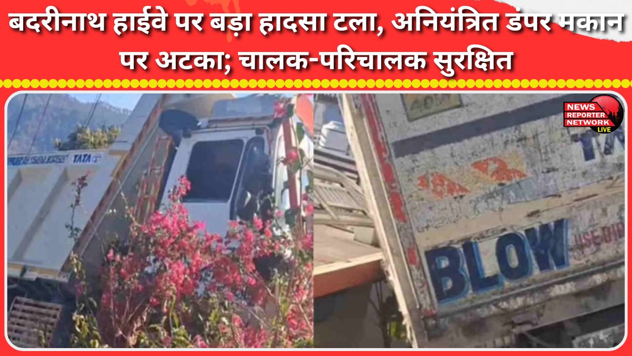 बदरीनाथ हाईवे पर बड़ा हादसा टला, अनियंत्रित डंपर मकान पर अटका; चालक-परिचालक सुरक्षित