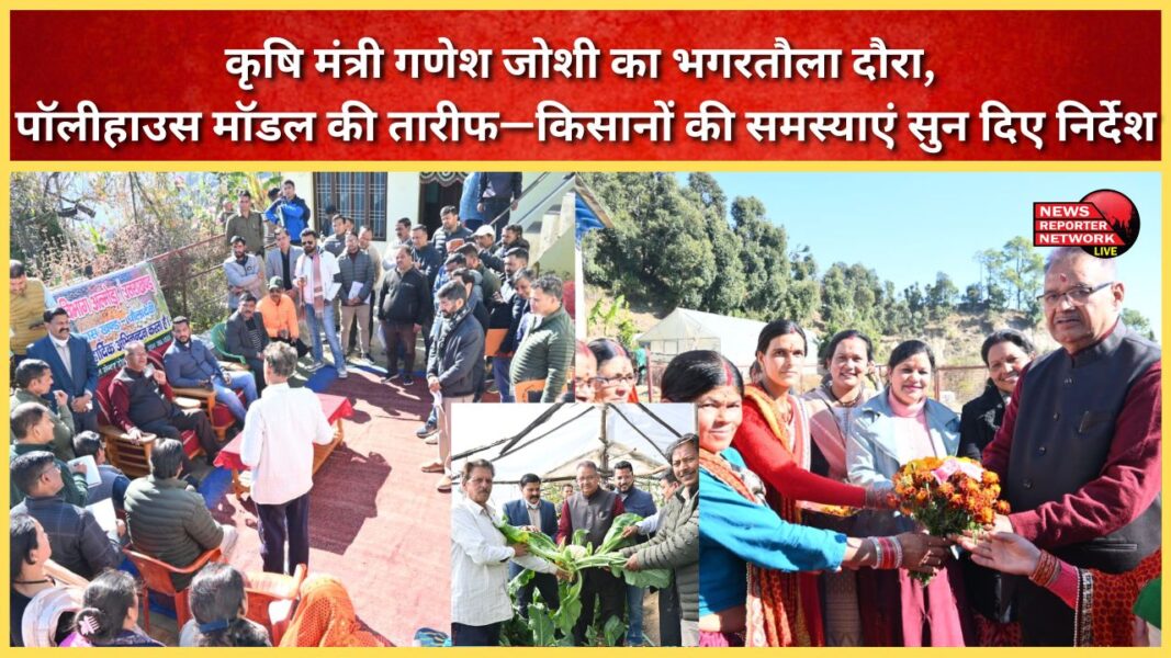 कृषि मंत्री गणेश जोशी का भगरतौला दौरा, पॉलीहाउस मॉडल की तारीफ—किसानों की समस्याएं सुन दिए निर्देश