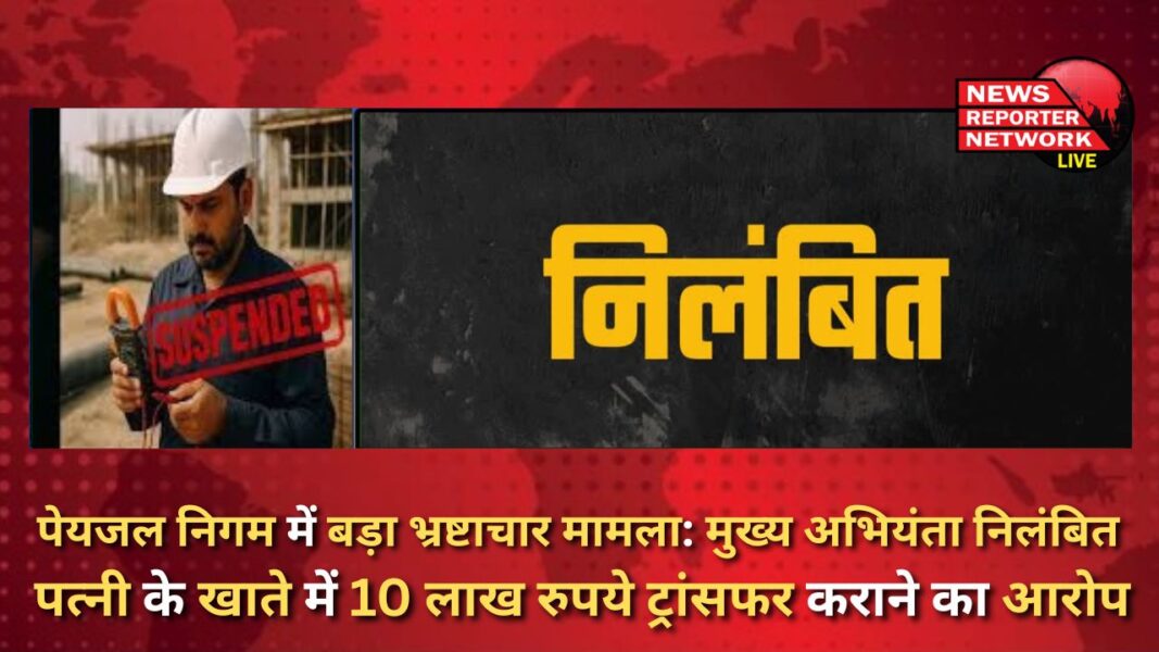पेयजल निगम में बड़ा भ्रष्टाचार मामला: मुख्य अभियंता निलंबित, पत्नी के खाते में 10 लाख रुपये ट्रांसफर कराने का आरोप