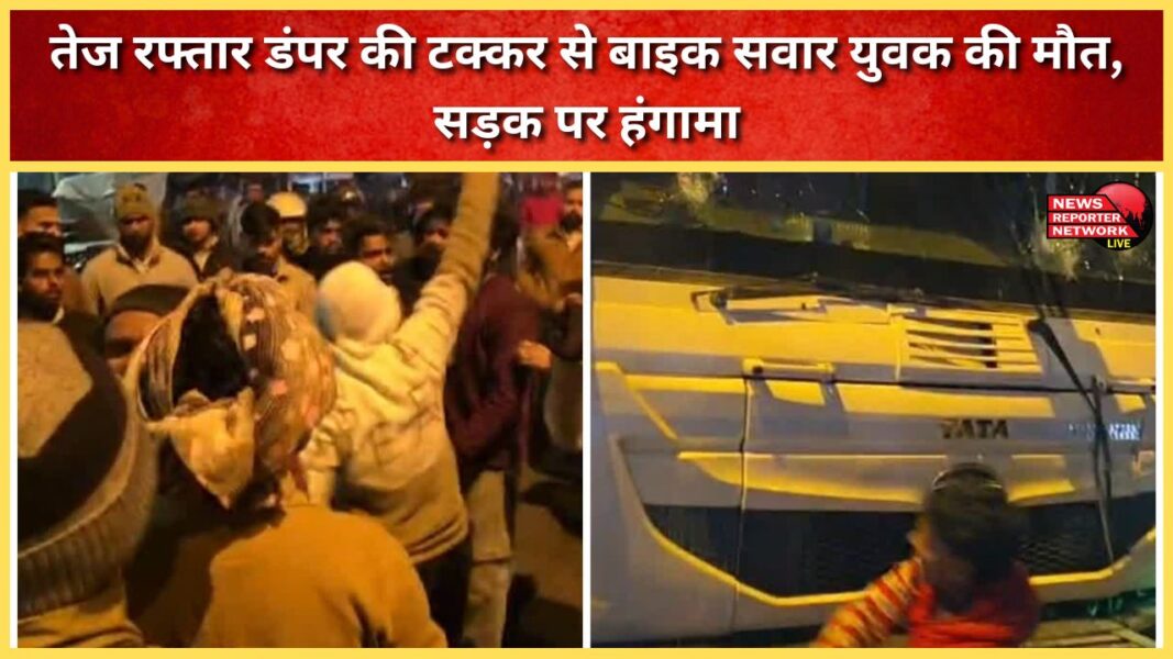 तेज रफ्तार डंपर की टक्कर से बाइक सवार युवक की मौत, सड़क पर हंगामा