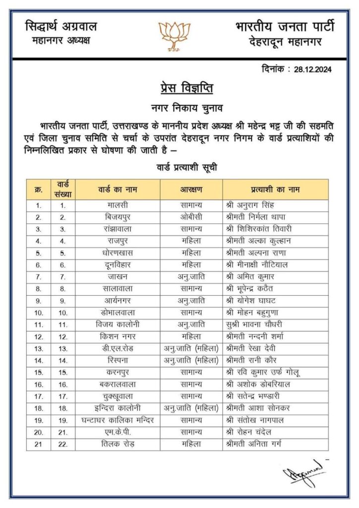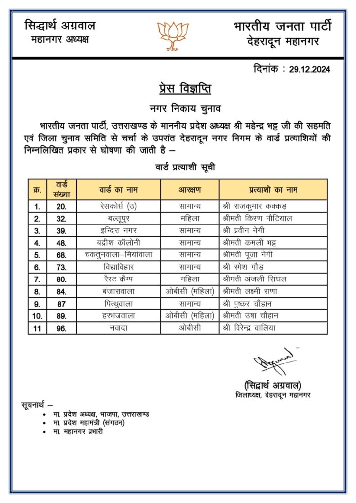 BJP released the list of councilor candidates बीजेपी ने जारी की पार्षद प्रत्याशियों की सूची By News Reporter Live Last updated Dec 29, 2024 बीजेपी ने जारी की पार्षद प्रत्याशियों की सूची Facebook Twitter LinkedIn WhatsApp #bjp#breakingnews#ChiefMinister #Dhami #uttarakhandnews #latestnews#dehradunnews#tajakhber#todaynews#uttarakhandnewsBJP released the list of councilor candidates