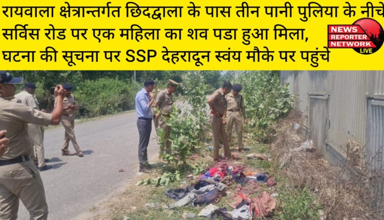 आज सोमवार दिनांक 06-05-2024 की प्रातः रायवाला क्षेत्रान्तर्गत छिदद्वाला के पास तीन पानी पुलिया के नीचे सर्विस रोड पर एक महिला का शव पडा हुआ मिला, जिसके गले पर गहरे घाव के निशान है, घटना की सूचना पर वरिष्ठ पुलिस अधीक्षक देहरादून स्वंय मौके पर पहुंचे और घटना के कारणो के सम्बंध में उपस्थित अधिकारियों से जानकारी प्राप्त की गयी और घटना के अनावरण के लिए संबंधित अधिकारी को निर्देशित किया गया, शव की शिनाख्त के प्रयास किये जा रहे है I