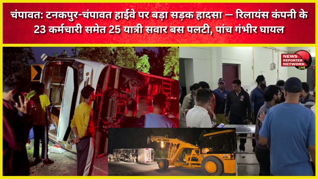 चंपावत: टनकपुर-चंपावत हाईवे पर बड़ा सड़क हादसा — रिलायंस कंपनी के 23 कर्मचारी समेत 25 यात्री सवार बस पलटी, पांच गंभीर घायल