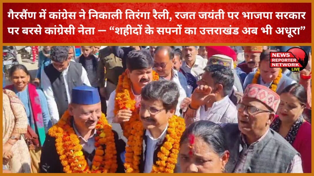 गैरसैंण में कांग्रेस ने निकाली तिरंगा रैली, रजत जयंती पर भाजपा सरकार पर बरसे कांग्रेसी नेता — “शहीदों के सपनों का उत्तराखंड अब भी अधूरा”