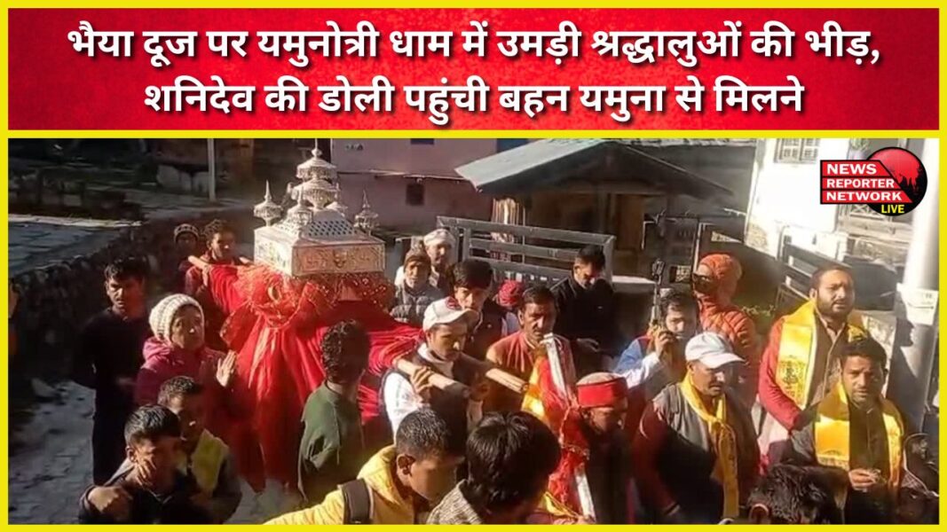 भैया दूज पर यमुनोत्री धाम में उमड़ी श्रद्धालुओं की भीड़, शनिदेव की डोली पहुंची बहन यमुना से मिलने
