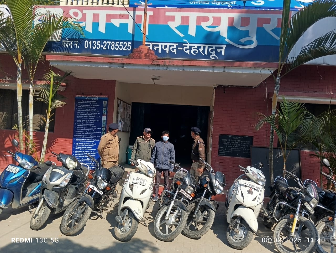 दिनांक 05/02/2025 को शिखा शर्मा, निवासी मंगलूवाला, थाना रायपुर देहरादून ने थाना रायपुर में एक प्रार्थना पत्र दिया था जिसमें उन्होंने बताया कि अज्ञात चोरों द्वारा उनकी स्कूटी (संख्या UK07BW8448) किद्दूवाला पेट्रोल पंप से चोरी कर ली गई। इस पर थाना रायपुर में मु0अ0सं0 38/2025 धारा 303(2) भारतीय न्याय संहिता 2023 के तहत मामला दर्ज किया गया।