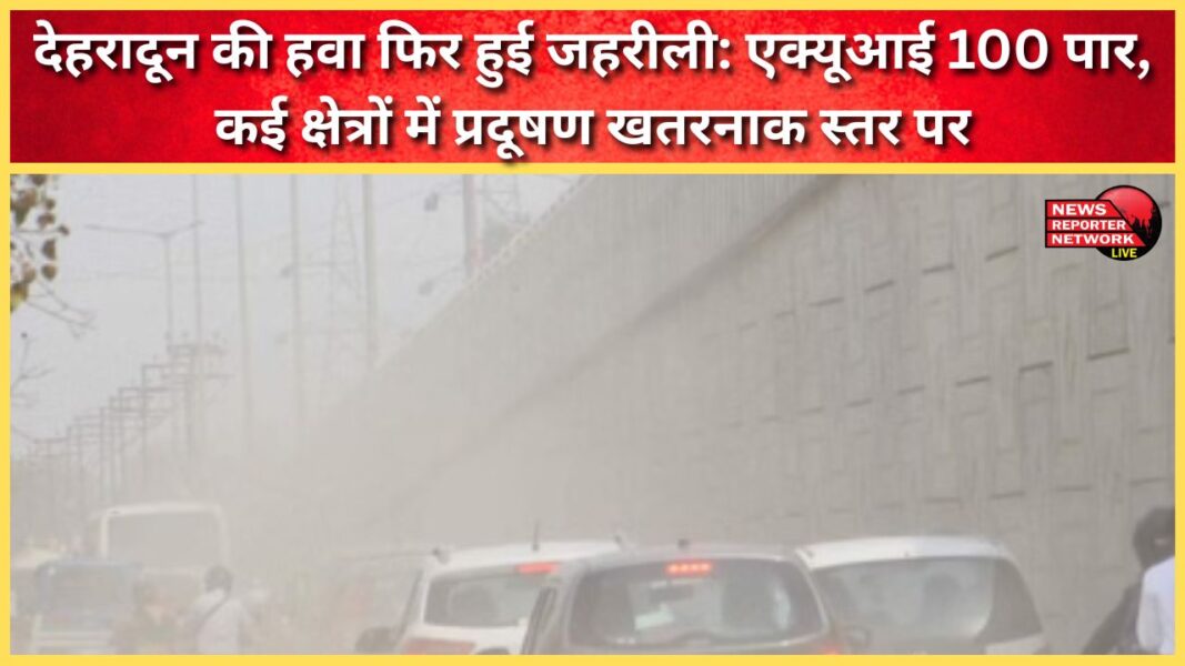 देहरादून की हवा फिर हुई जहरीली: एक्यूआई 100 पार, कई क्षेत्रों में प्रदूषण खतरनाक स्तर पर