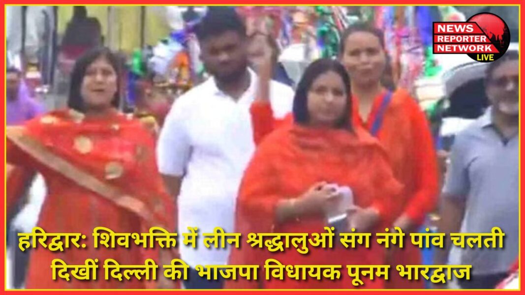 हरिद्वार: शिवभक्ति में लीन श्रद्धालुओं संग नंगे पांव चलती दिखीं दिल्ली की भाजपा विधायक पूनम भारद्वाज