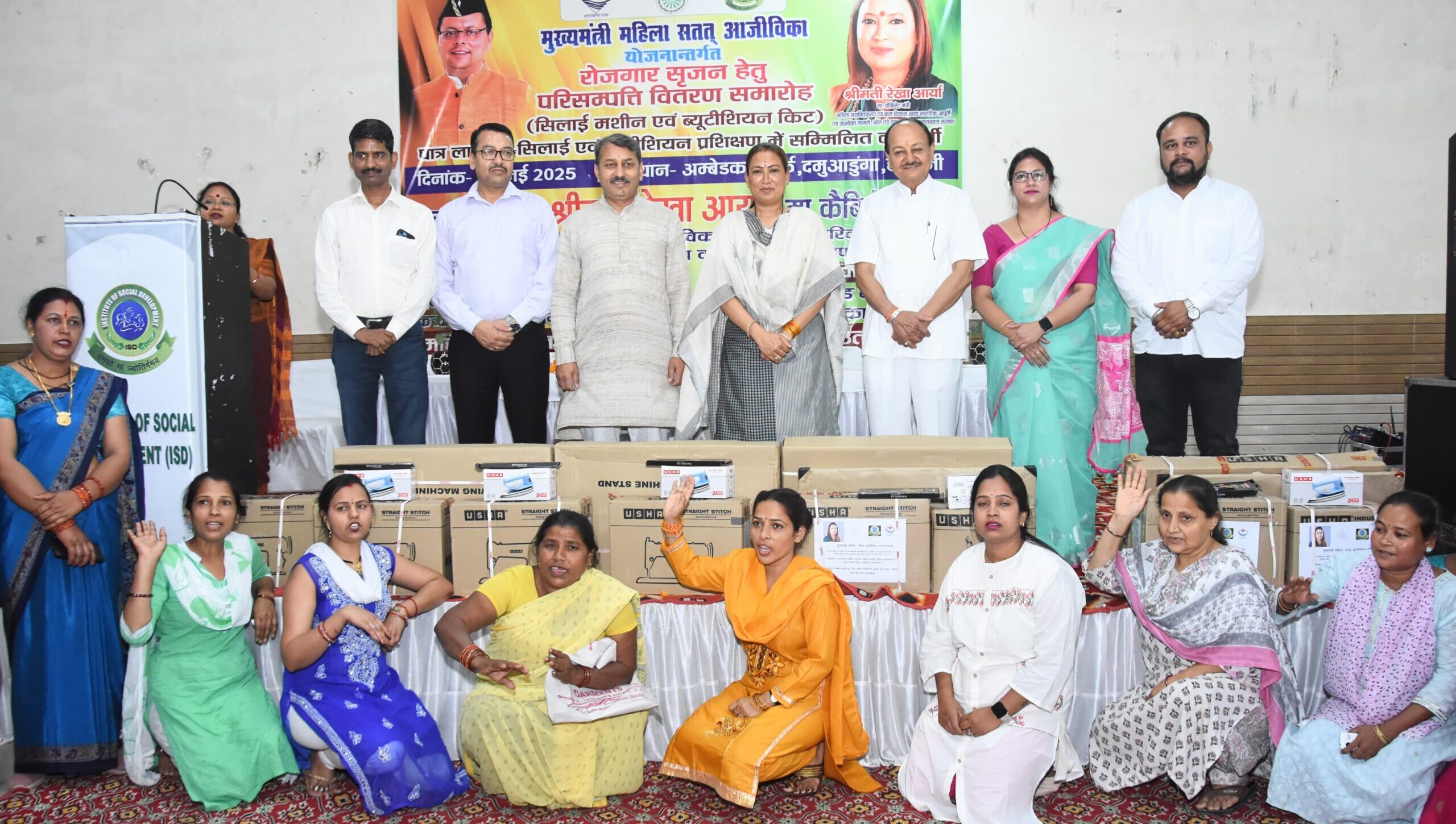 हल्द्वानी : राज्य की महिला सशक्तिकरण एवं बाल विकास मंत्री रेखा आर्या ने शनिवार को हल्द्वानी के दमुवाढूंगा स्थित अंबेडकर पार्क सभागार में आयोजित कार्यक्रम में प्रशिक्षण प्राप्त महिलाओं को सिलाई और ब्यूटीशियन किट वितरित की। कार्यक्रम के दौरान उन्होंने कहा कि बेटियों को बचपन से ही लीडरशिप क्वालिटी सिखाने की जरूरत है ताकि वे आत्मनिर्भर और समाज में सम्मानपूर्वक जीवन जी सकें।