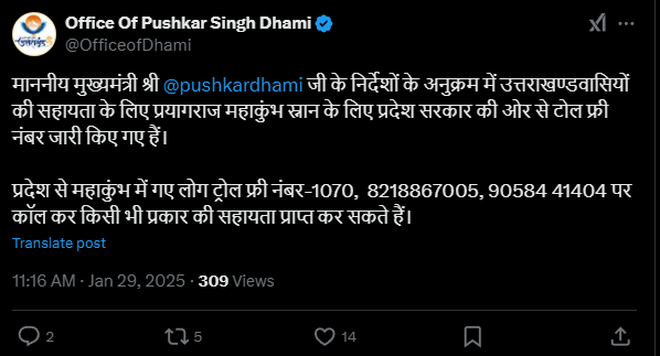 महाकुंभ भगदड़: प्रयागराज में फंसे उत्तराखंड के श्रद्धालुओं के लिए सरकार ने जारी किया टोल फ्री नंबर