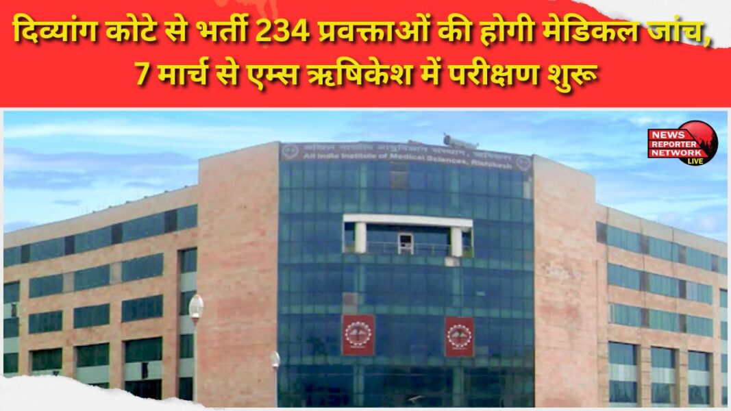 दिव्यांग कोटे से भर्ती 234 प्रवक्ताओं की होगी मेडिकल जांच, 7 मार्च से एम्स ऋषिकेश में परीक्षण शुरू