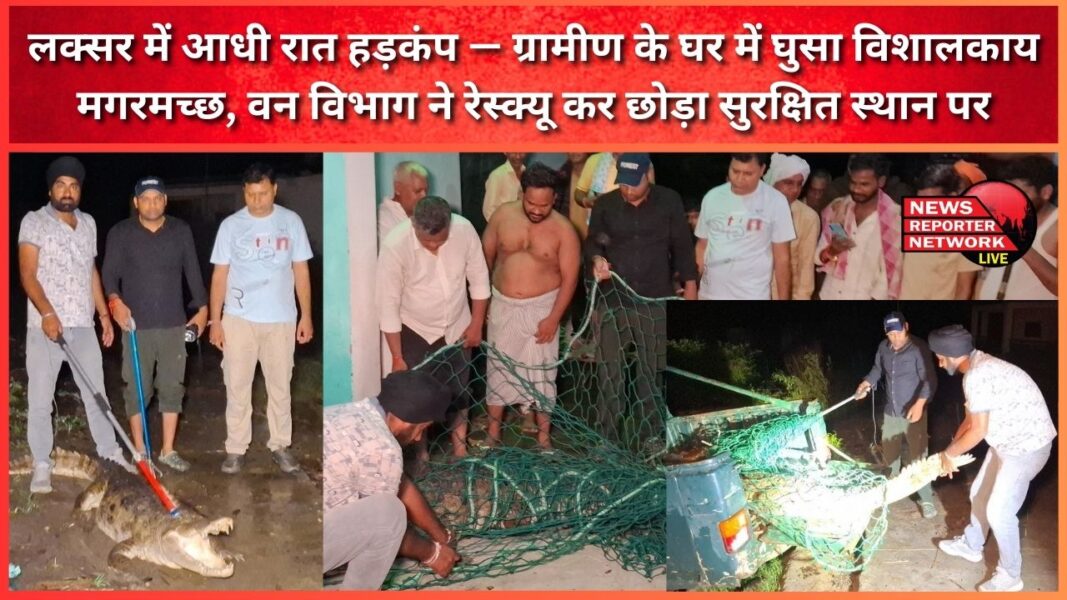 लक्सर में आधी रात हड़कंप — ग्रामीण के घर में घुसा विशालकाय मगरमच्छ, वन विभाग ने रेस्क्यू कर छोड़ा सुरक्षित स्थान पर