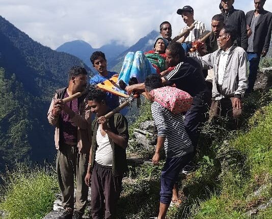 पिथौरागढ़ के गोल्फा गांव में बुनियादी सुविधाओं का टोटा, घायल महिला को ग्रामीणों ने 5 किमी डोली में उठाकर पहुंचाया अस्पताल