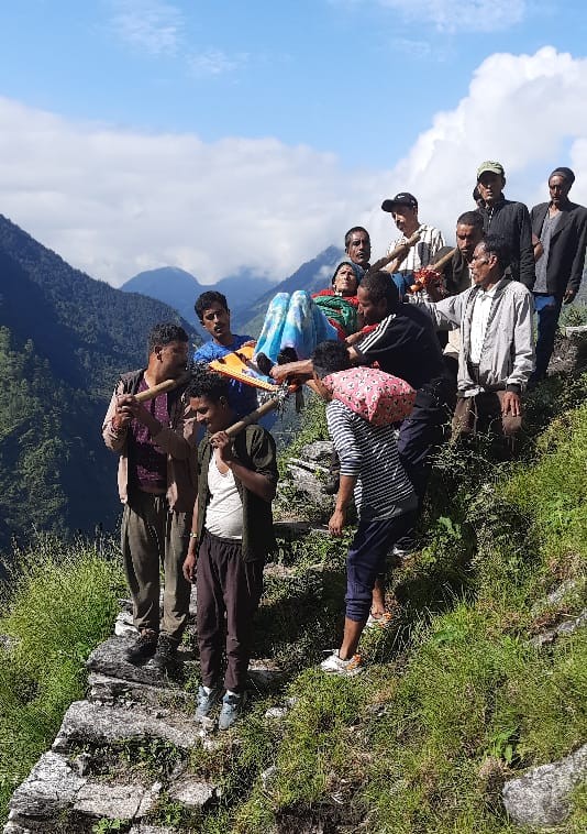 5 किलोमीटर डोली में उठाकर पहुंचाया घायल महिला को अस्पताल